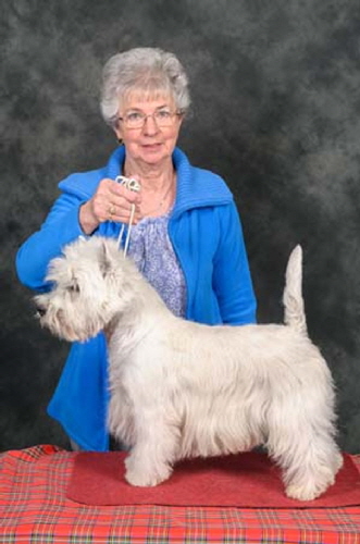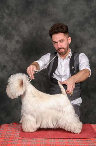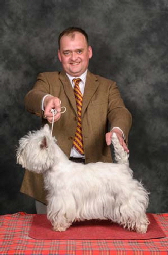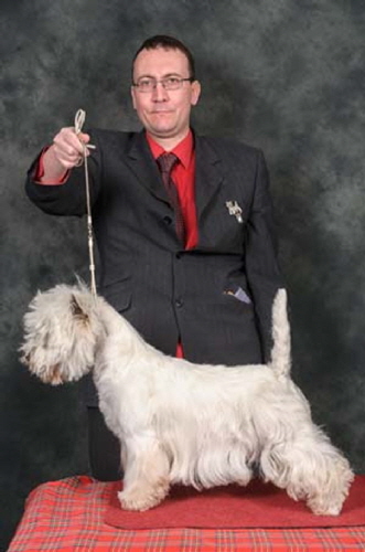 Best Puppy & Reserve BIS - WHWT Club Open show, Best Puppy - Scottish KC (May), Best Puppy & Puppy Group#4 at Birmingham National, Best Puppy - Border Union, Best Puppy & Puppy Group#2 - Blackpool, Best Puppy - Windsor and Best Puppy & Puppy Group#1 - East of England. He has since won his 1st CC, BOB and Terrier Group#1 at Bournemouth and the Reserve CC at the Welsh KC.